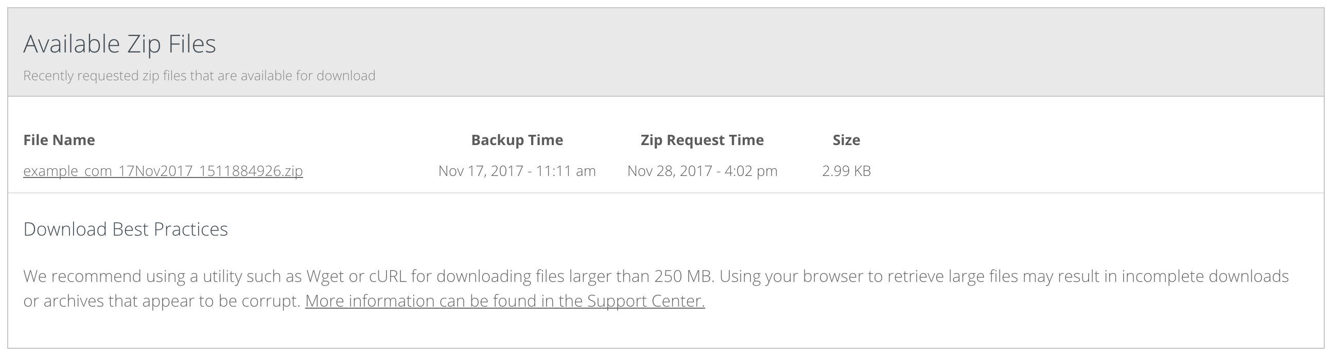 - CodeGuard starts packaging your files into a zip archive, which may take a few minutes based on the total file size.